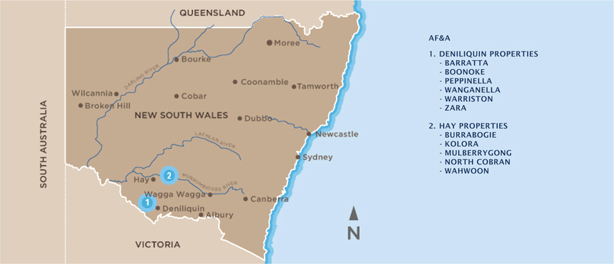 AFA has land holdings with properties located in the districts of Deniliquin and Hay.