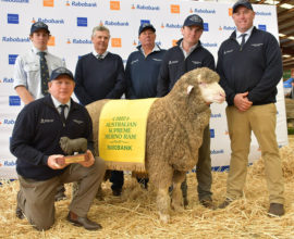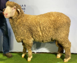 | Stud Master: | A big plain bodied sire with excellent conformation; he has a broad straight back, stands squarely on all feet and has a sirey, pure head. His medium wool is white, stylish, soft handling and has length of staple. A modern Poll Merino and true dual purpose sire showing a balance of wool and carcase traits. Champion Australian Merino All Purpose Ram at 2022 Australian Sheep & Wool Show. |
