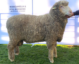 | Stud Master: | Poll Boonoke 190678 is an AI lamb by Willandra Poll 170018. A strong constitution, dual purpose type, he has a notable sirey outlook and his strong head is nicely covered with a good dry poll. This superb looking ram has an excellent length of body and broad back. He is very wide through the chest; and his body width and depth is outstanding. He is right up on his feet, has a solid rear and displays good width between his hocks. This ram is growing a high quality medium wool that is very even, bright and exhibits style and soft handle. Sold to Haddon Rig Poll Stud for $65,000 in 2020. |